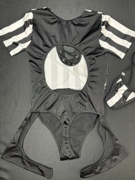 Black/White Referee One-Piece Short Sleeve Lingerie Outfit
