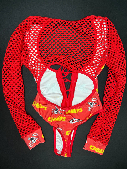 Red Chiefs One-Piece Bikini Top/Leotard Bartender Lingerie Outfit