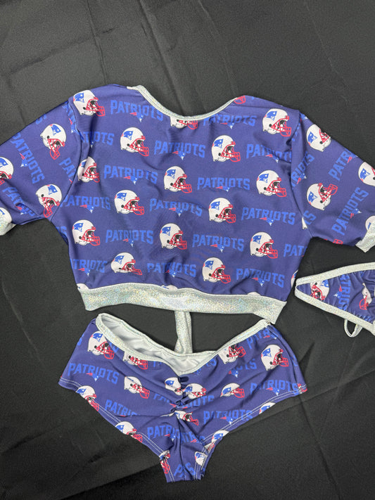 Patriots Print/Silver Spandex Short Sleeve Top/Shorts Two-Piece Lingerie Outfit