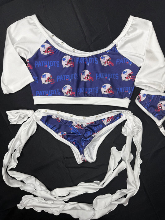 Patriots Print/White Spandex Short Sleeve Top/Bikini Bottoms Two-Piece Lingerie Outfit