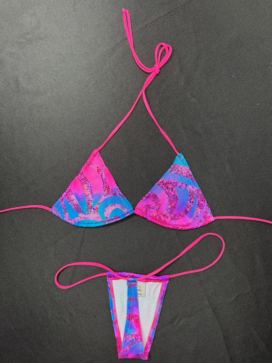 Pink/Blue Ombré Print Spandex Two-Piece Micro Bikini Lingerie Outfit