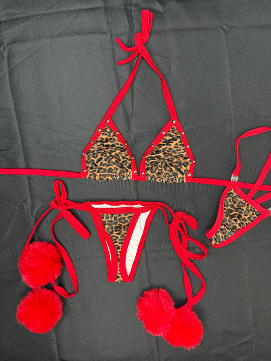 Animal Print/Red Spandex Two-Piece Bikini Lingerie Outfit