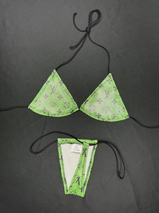 Neon Green Tiger Print Designer Spandex Two-Piece Micro Bikini Lingerie Outfit