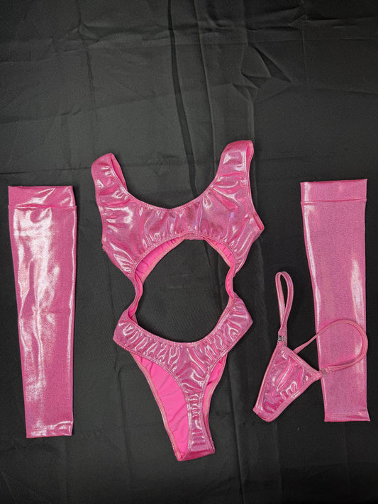 Metallic Pink One-Piece/Sleeves Lingerie Outfit