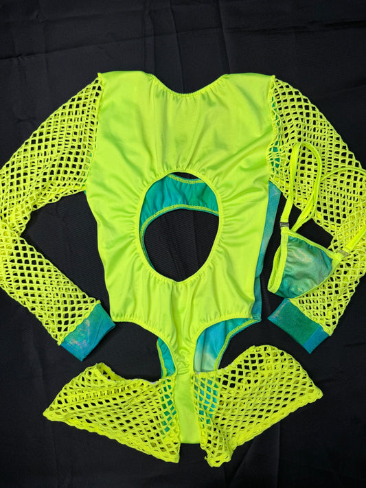 Neon Yellow/Metallic Yellow/Green Romper Lingerie Outfit