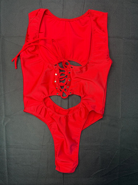 Red Spandex Sleeveless Leotard/Bikini Top One-Piece Lingerie Outfit