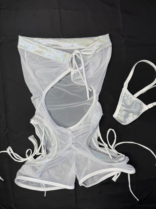 Metallic White Spandex Sling-Shot Lingerie Outfit