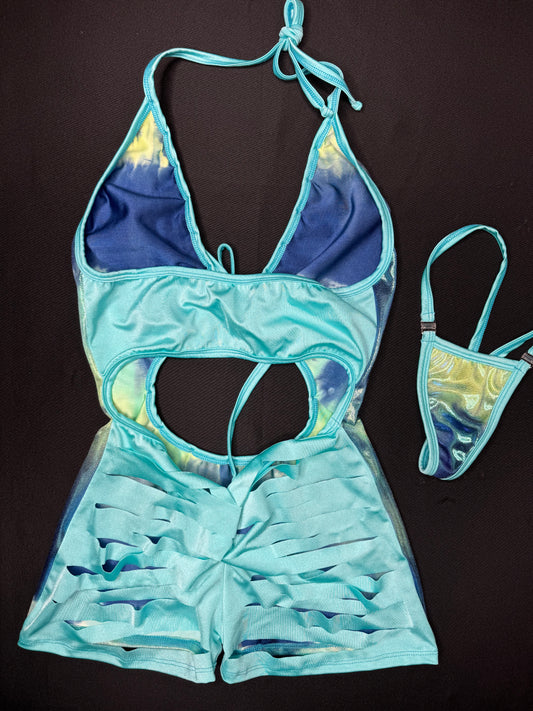 Navy/Cyan Ombré One-Piece Ripped Back Lingerie Outfit