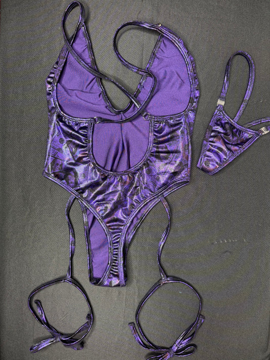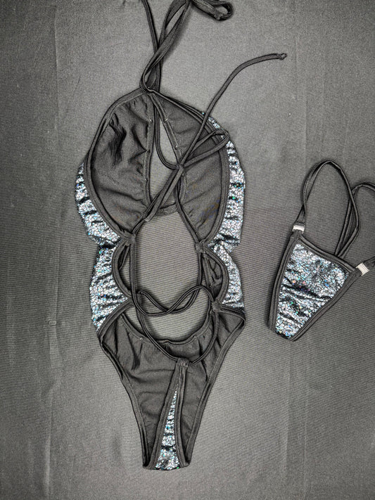 Metallic Black/Black Spandex One-Piece Lingerie Outfit