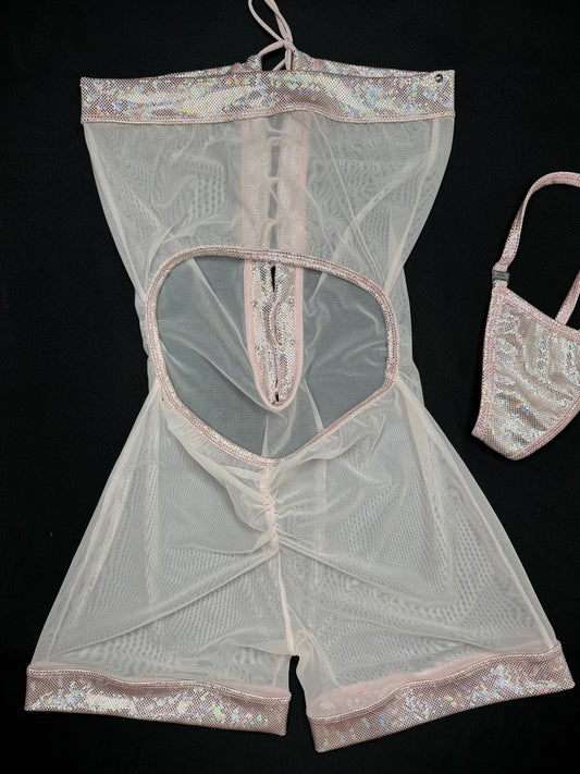 Metallic Pink/Pink Mesh One-Piece Lingerie Outfit