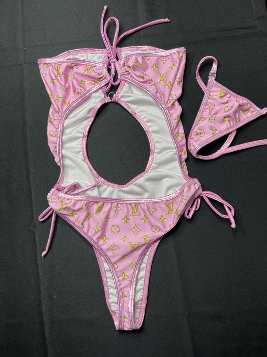 Metallic Pink/Baby Pink One-Piece Exotic Dancer Outift