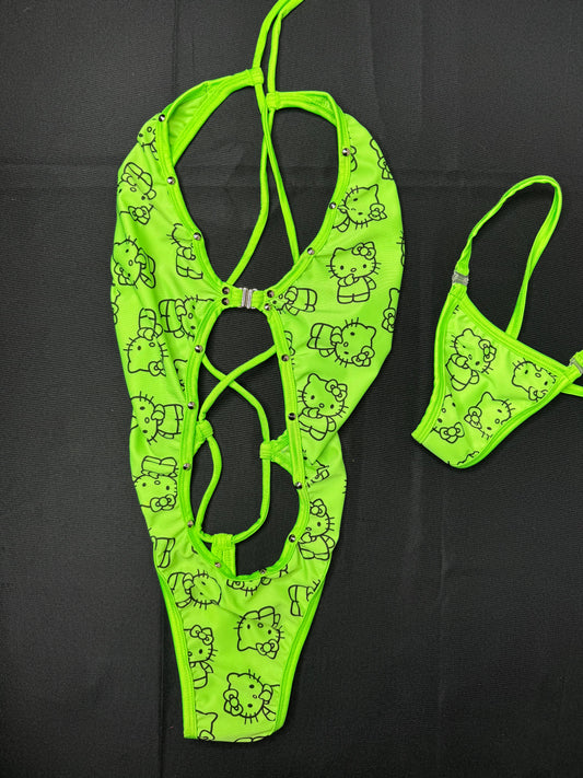 Neon Green One-Piece Kitty Lingerie Outfit