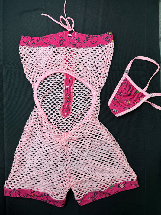 Hot Pink/Baby Pink Kitty Fishnet One-Piece Exotic Dancer Outfit