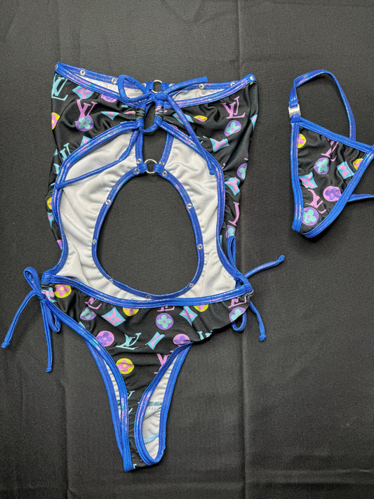 Baby Blue One-Piece Sling Shot Exotic Dancer Outfit