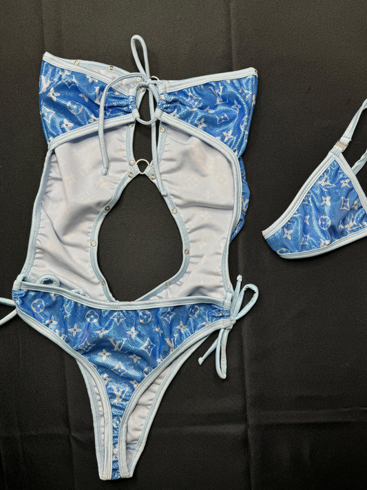 Metallic Baby Blue One-Piece Exotic Dancer Outfit