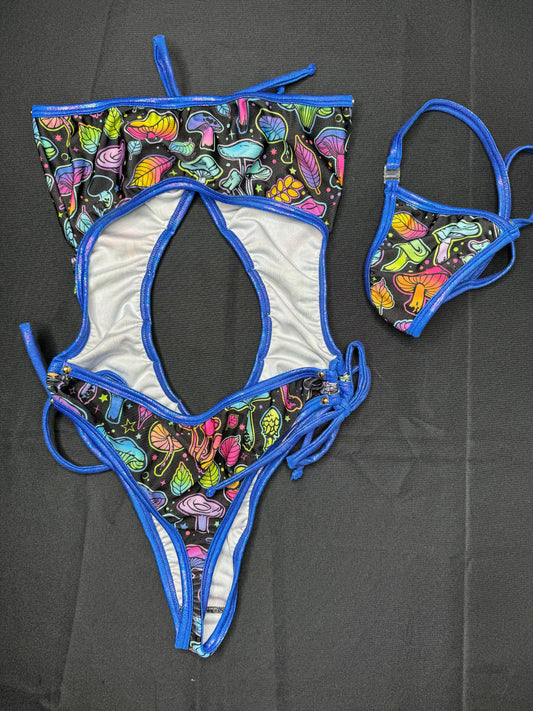Cosmic Purple/Black Mushroom One-Piece Exotic Dancer Outfit