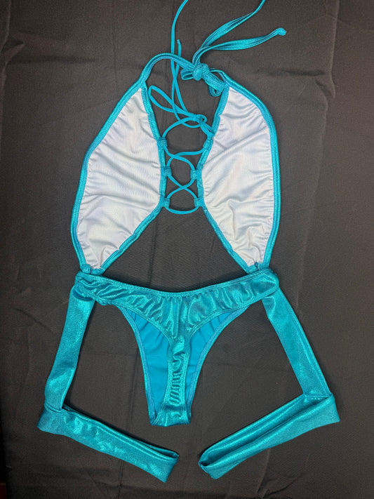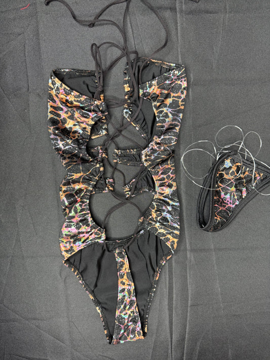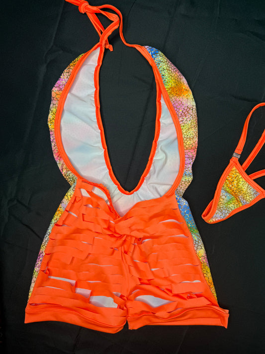 Shimmery Pink and Orange Holographic One-Piece Lingerie Outfit
