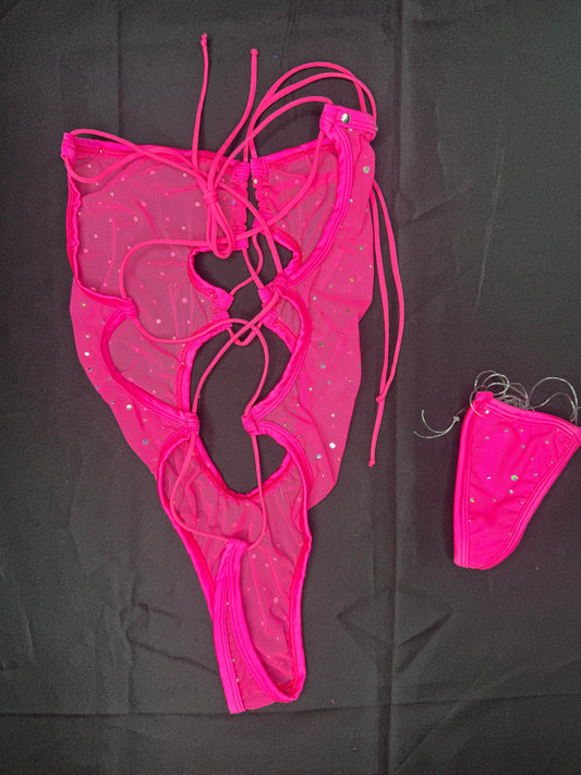Hot Pink Mesh One-Piece Lingerie Outfit