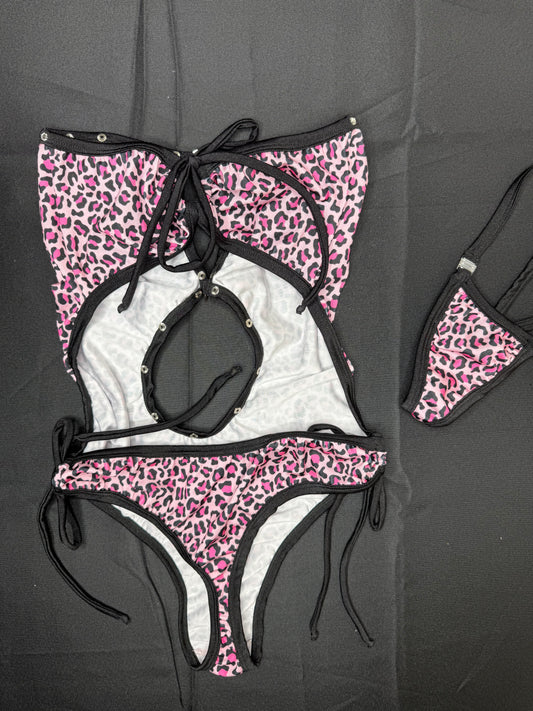 Pink Cheetah Print Spandex One-Piece Lingerie Outfit