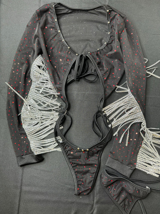 Black/Red Sparkle Mesh One-Piece Stripper Outfit