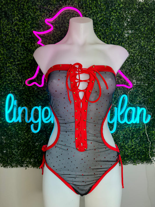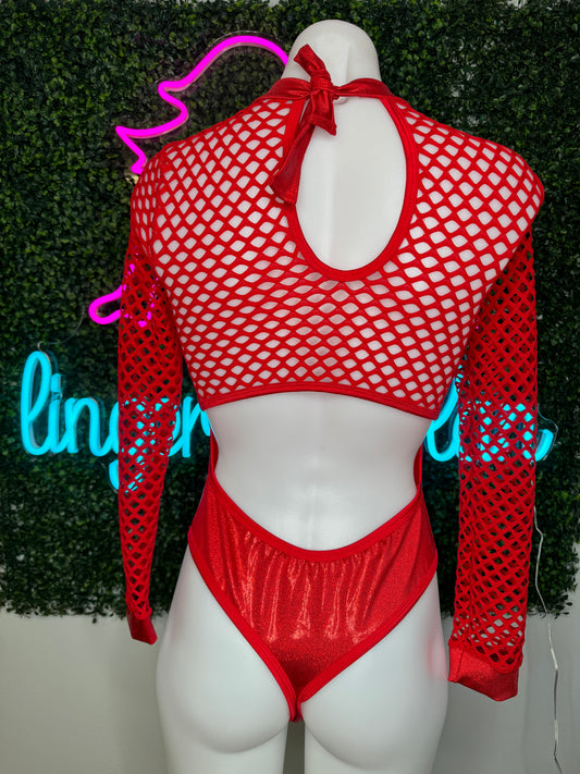 Red Fishnet/Spandex One-Piece Exotic Dancer Outfit