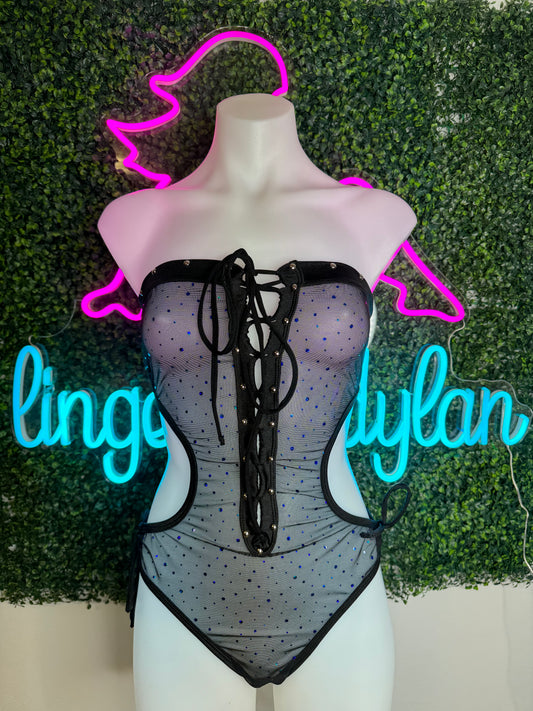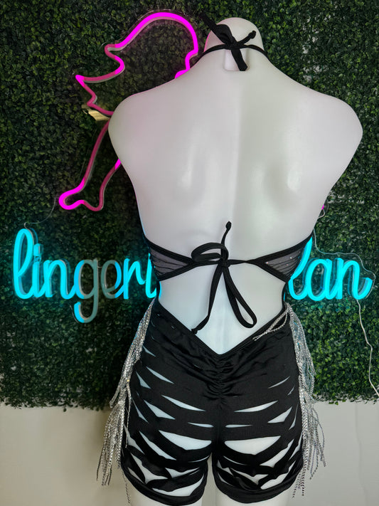 Black/Silver Sparkle Mesh One-Piece Stripper Outfit