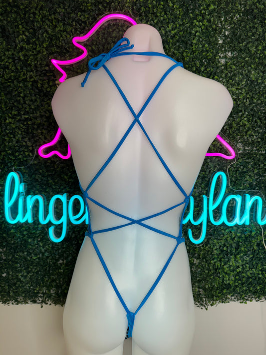 Royal Blue Long Sleeve Fishnet Spandex Bartender Outfit