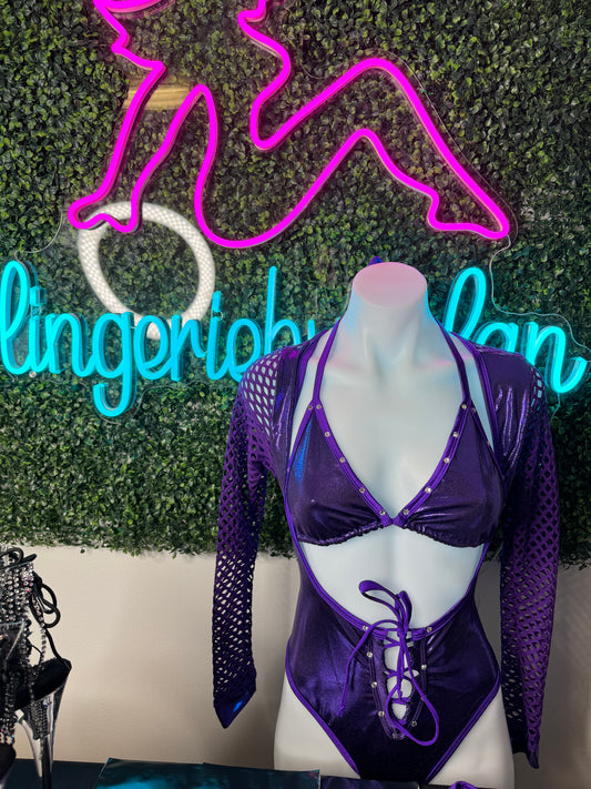 Purple Shoulder Strap One-Piece Outfit Stripping Perfection