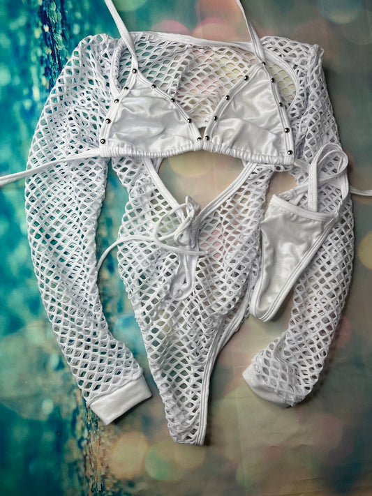 White Fishnet Exotic Dance Wear Outfit Style and Comfort
