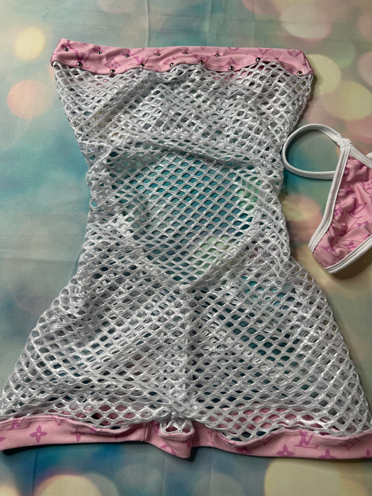 Metallic White Fishnet Exotic Dance Wear & Matching Thong