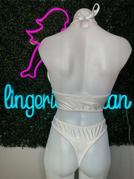 White Ripped Back Exotic Dance Wear One-Piece Lingerie Outfit
