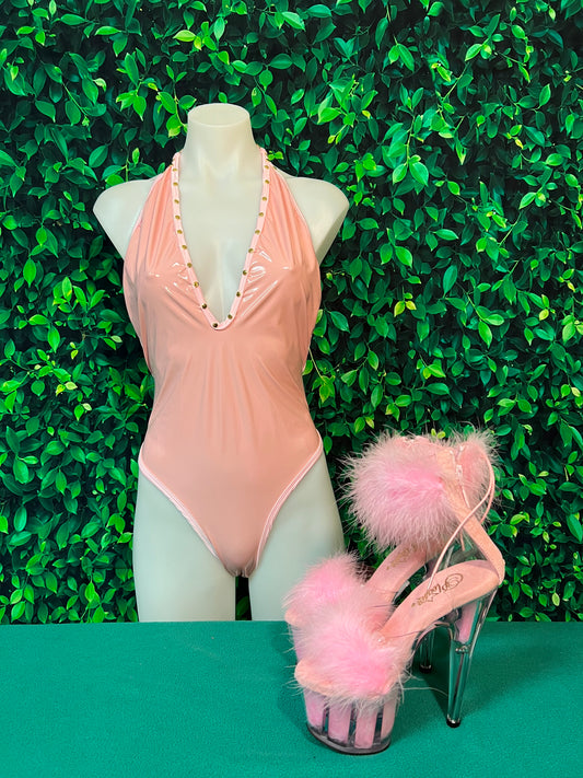 Baby Pink Exotic Dance Wear Latex One-Piece Leotard