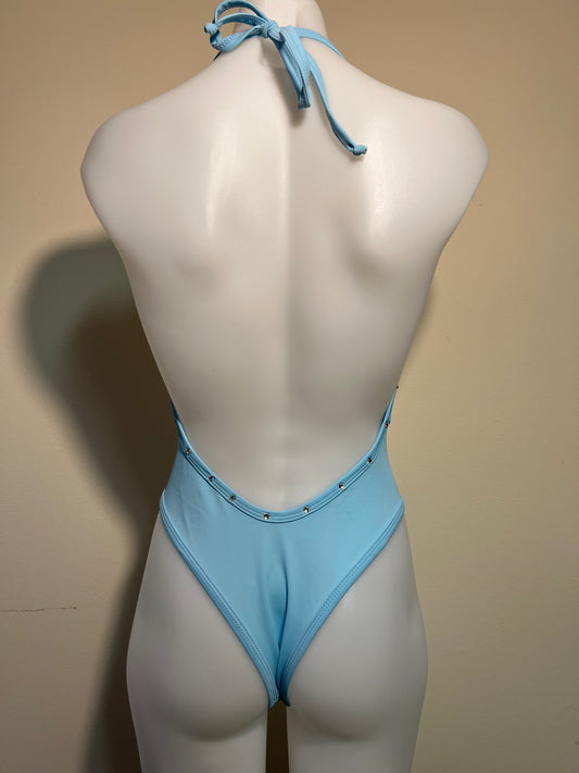 Metallic/Baby Blue Exotic Dance Wear One Piece Outfit.