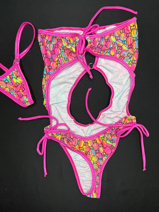 Baby Pink/Rainbow One-Piece Sling-Shot Lingerie Outfit