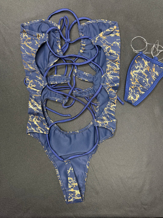 Royal Blue/Gold Spandex One-Piece Lingerie Outfit