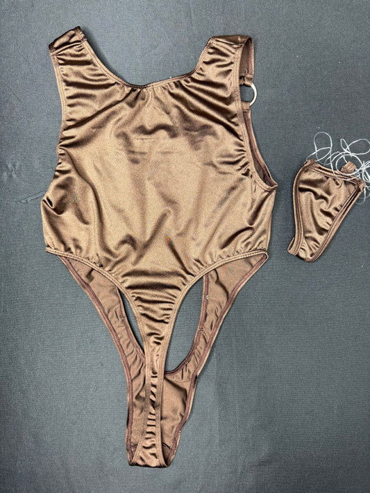 Chocolate Spandex One-Piece Leotard Lingerie Outfit