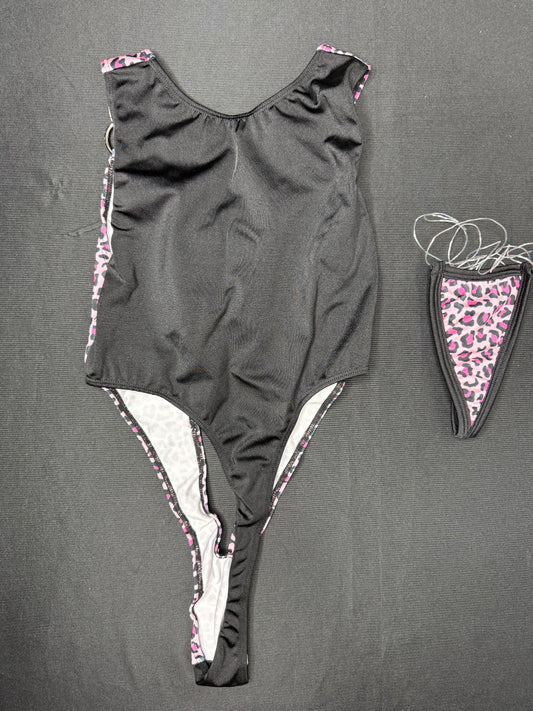 Pink Cheetah Animal Print Spandex Leotard One-Piece Lingerie Outfit