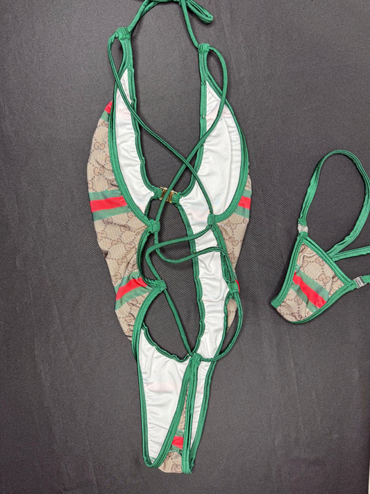 Brown/Green Designer Spandex One-Piece Lingerie Outfit