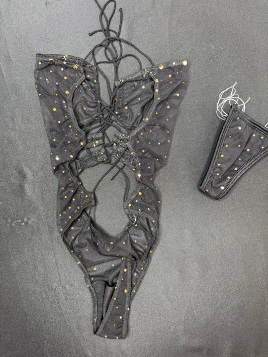 Black Sparkle Mesh One-Piece Lingerie Outfit