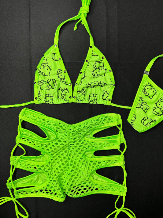Neon Yellow Two-Piece Kitty Exotic Dancer Outfit