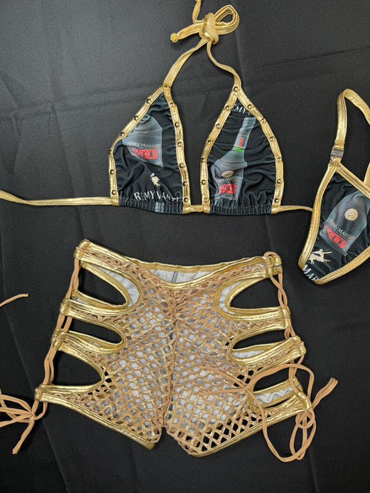 Black/Gold Henny Two-Piece Shorts Two-Piece Exotic Dancer Outfit