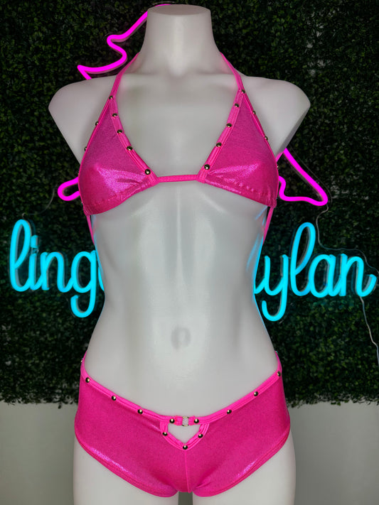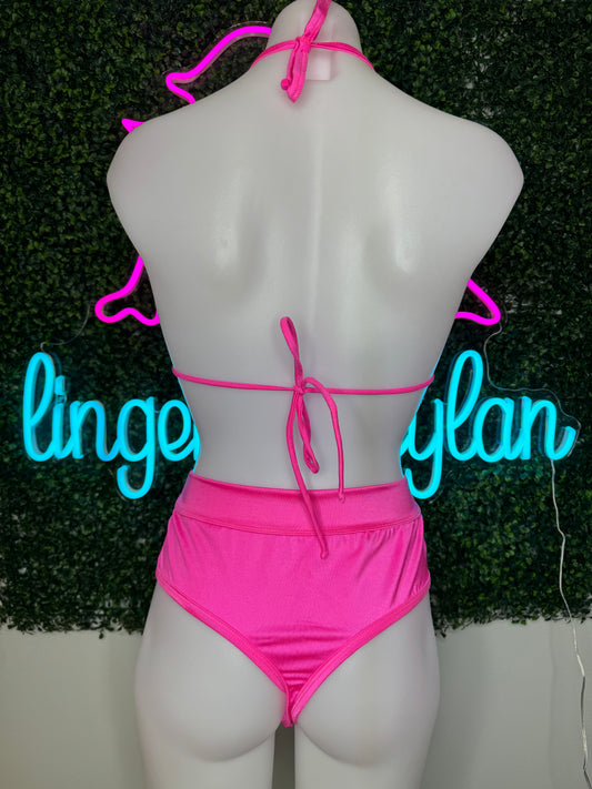 Hot/Baby Pink High Waisted Short Two-Piece Stripper Outfit