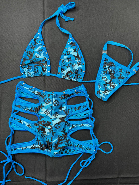 Yellow/Turquoise Two-Piece Shorts Exotic Dancer Outfit