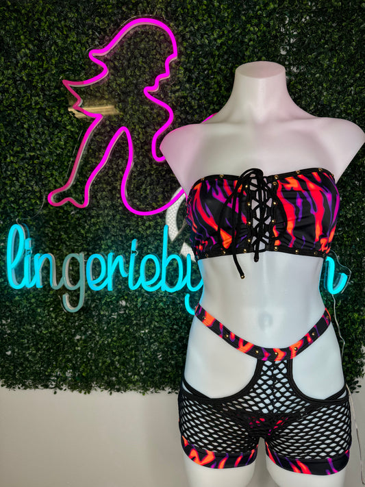 Yellow/Pink Two-Piece Tube Top Two-Piece Exotic Dancer Outfit
