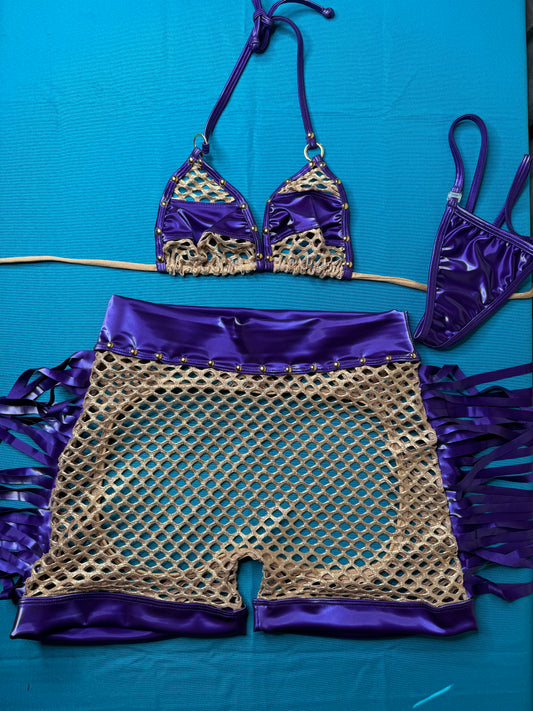 Exotic Dance Wear Fishnet Two-Piece Chaps Lingerie Outfit