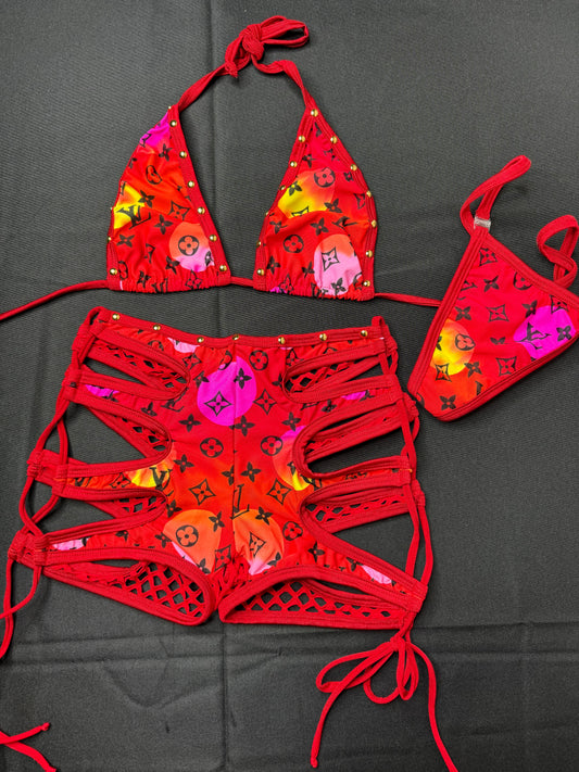 Red/Black Exotic Dance Wear Two-Piece Outfit Sensual Stripper