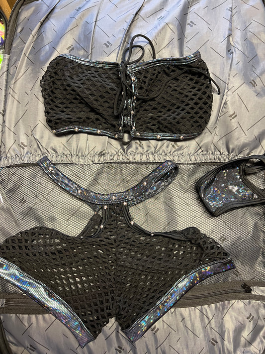 Two-Piece Chrome And Black Bikini Top/Shorts Lingerie Outfit