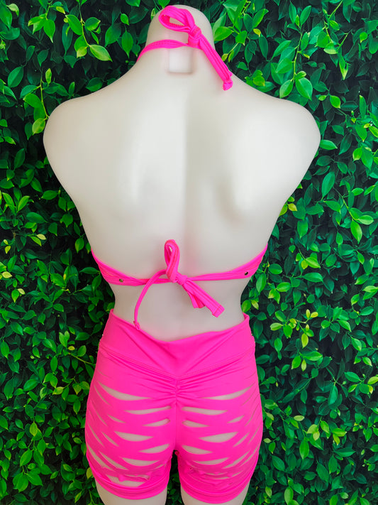 Neon Yellow Exotic Dance Wear Bikini Top/Ripped Shorts