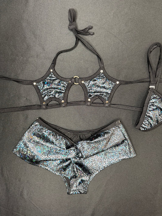 Holographic Rainbow Bikini Top/Shorts Two-Piece Lingerie Outfit