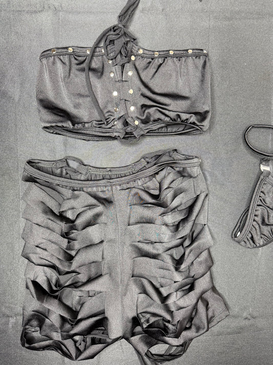 Black Tube-Top/Shorts Ripped Back Shorts Lingerie Outfit